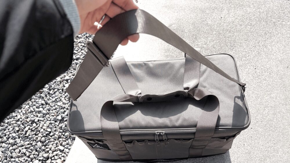 キャンプ道具の持ち運びって両手が塞がることが多いので、肩掛けできるのは嬉しいですよね。