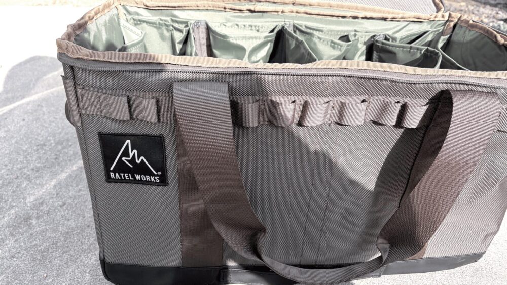 ラーテルワークスの「キャンプギアバッグ」を使用してみた感想と、実際の収納事例を紹介しました。
