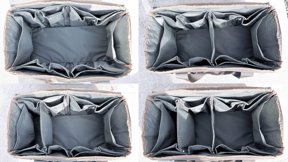 またキャンプギアバッグの仕切りはファスナー式となっているので、取り付けてしまえばマジックテープ式のように剥がれる心配もありません。いつでも整理整頓された状態を保つことができます。