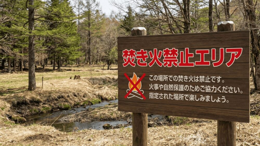 焚き火禁止エリアでは絶対に焚き火はやらないようにしましょう。