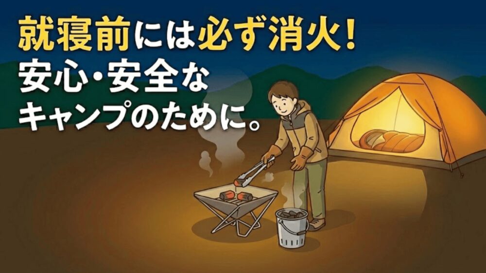 | 消火・後片付け | 就寝前に必ず消火を確認する 水をかけて消火しない |